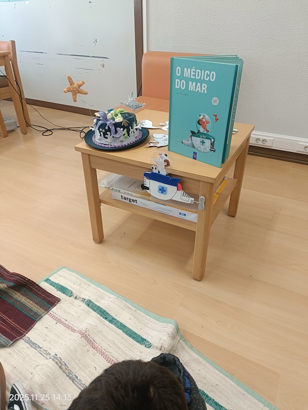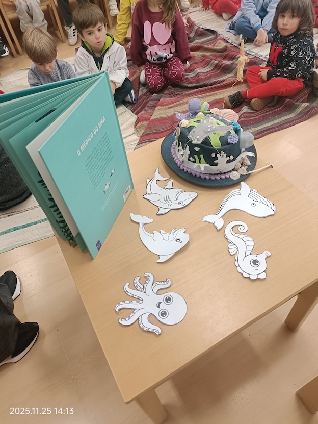Protagonizada pela professora Sónia Domingues, realizou-se nesta terça-feira, 25 de novembro, uma atividade na Biblioteca da EB1/JI de Caminha dirigida às meninas e meninos do Jardim de Infância. Foi contado o livro "O médico do mar", de Leo Timmers, que fez as delícias dos mais pequenos com a história de um simpático médico que vive no fundo do mar e está sempre pronto a ajudar todas as criaturas marítimas que estão em apuros com a ajuda do seu fabuloso e moderno submarino que o transporta para todo o lado.