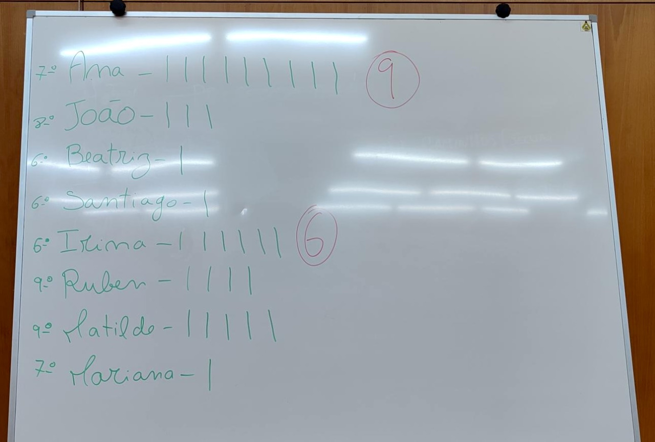 Aproveitando o intervalo maior da manhã, realizou-se a primeira reunião dos Amig@s da Biblioteca da Escola Básica e Secundária de Caminha, que contou com uma boa afluência — trinta e dois alun@s, distribuídos pelos vários anos de escolaridade dos 2º e 3º ciclos. Na ocasião foram eleitas democraticamente as coordenadoras para o ano letivo de 2025/2026: a Ana Lourenço (7ºB) e a Irina Mesquita (6ºC). Parabéns às duas!