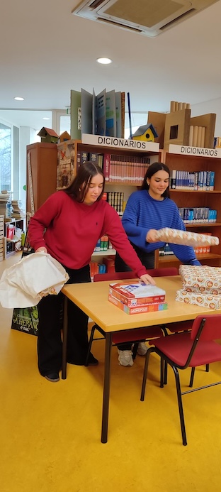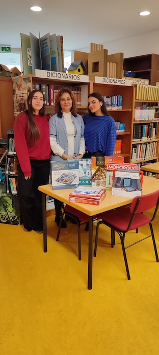 As imagens mostram a receção dos novos jogos na biblioteca da EBS de Caminha, ocasião que contou a presença de representantes da Associação de Estudantes, Catarina Vieitas e Íris Dias.