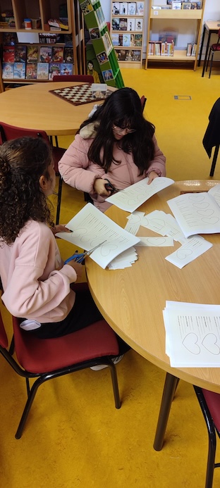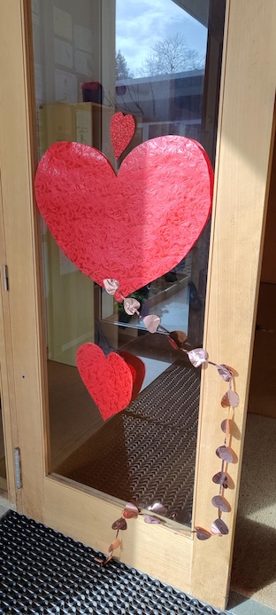 Sob a orientação da AO Helena Mendonça e a participação ativa dos Amig@s da Biblioteca, o S.Valentim chegou à Biblioteca da EBS de Caminha sob a forma de bonitas decorações — em grande parte resultado da reciclagem de materiais diversos — e do habitual concurso, este ano ligeiramente desfasado do Dia dos Namorados (14 de fevereiro), já que este cai num sábado, seguindo-se a pausa letiva do Carnaval.